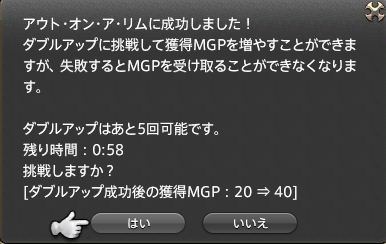 成功すると、報酬を受け取るか、ダブルアップに挑戦するか選べます。