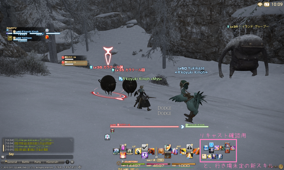 PT表示、パラメーター、経験値バー、リキャスト確認用ホットバーです。